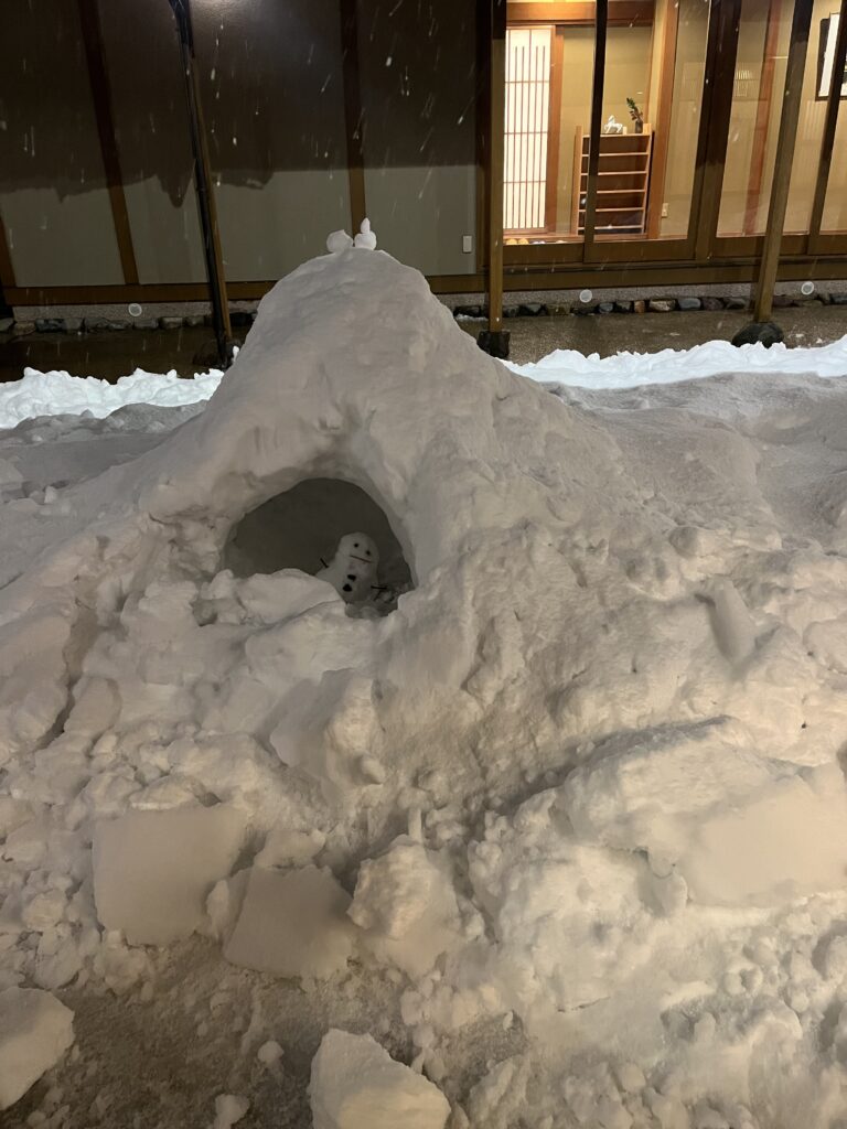 雪もやっと落ち着きを見せました。雪が降り続き、にしたにや海華も、すっかり冬の景色になりました。